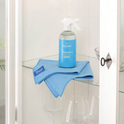 Der Glasreiniger entfernt Fingerabdrücke oder leichte Fettverschmutzungen superschnell und sorgt so für streifenfreien Glanz auf Glasflächen und Spiegeln.