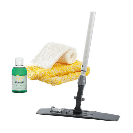 De ideale set voor de reiniging van kwetsbare, gladde vloeren: de groene hoogpolige vezel verwijdert alle vervuilingen die door dagelijkse slijtage ontstaan. Na het wissen met de groene vezel het vuile sop gewoon opnemen met de witte laagpolige vezel, klaar!
