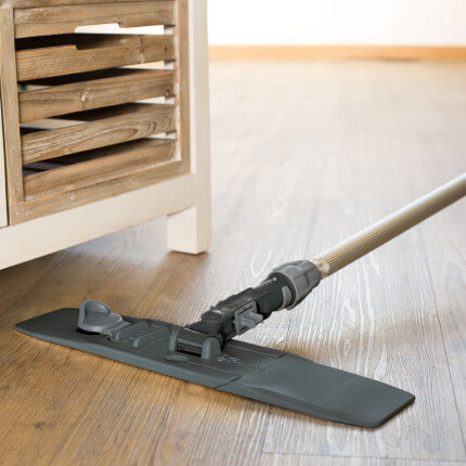 De must-have voor het efficiënt en moeiteloos reinigen van de vloer in combinatie met de Telescoopsteel en deJEMAKO Vloervezels. Het scharnier zorgt ervoor dat de vloerplaat in alle richtingen kan worden bewogen, en is indien nodig verstelbaar. De handige voetknop is eenvoudig te bedienen.