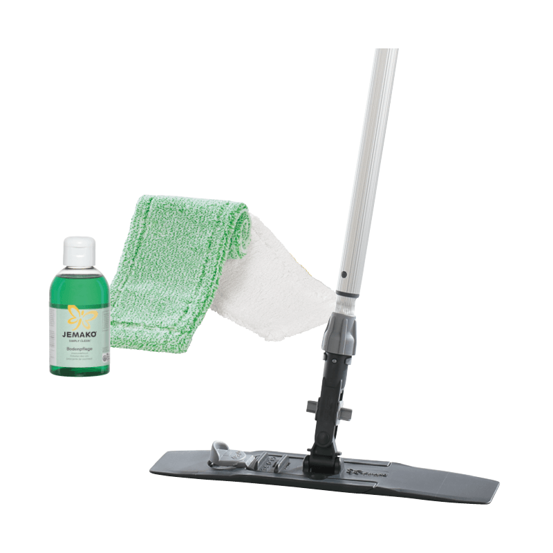 Dankzij de robuuste en duurzame vezels de uitgelezen set voor alle matte en ruwe vloeren! Eenvoudig met de groene vezel dweilen, daarna met de witte vezel het water en losgemaakte vuil opnemen, klaar – super snel, super eenvoudig!