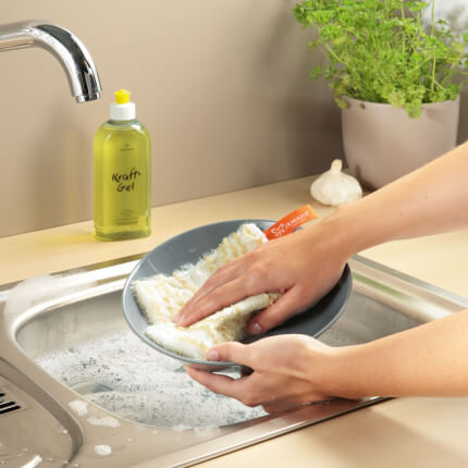Per il lavaggio a mano delle stoviglie e una passata sulle superfici di lavoro e i tavoli.