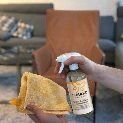 Il detergente speciale per la pulizia di tutti i materiali in pelle e le superfici imbottite elimina anche lo sporco ostinato senza aggredire i materiali.