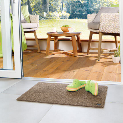 Die Fußmatte verträgt sich mit fast allen Untergründen im Innenbereich bzw. im überdachten Außenbereich. Auch auf Böden mit Fußbodenheizungen und geöltem Parkett kann sie problemlos eingesetzt werden. Es empfiehlt sich aber, bei bestimmten Böden (wie PVC, der Weichmacher enthält) zuvor die Empfehlung des Fußbodenherstellers zu beachten.