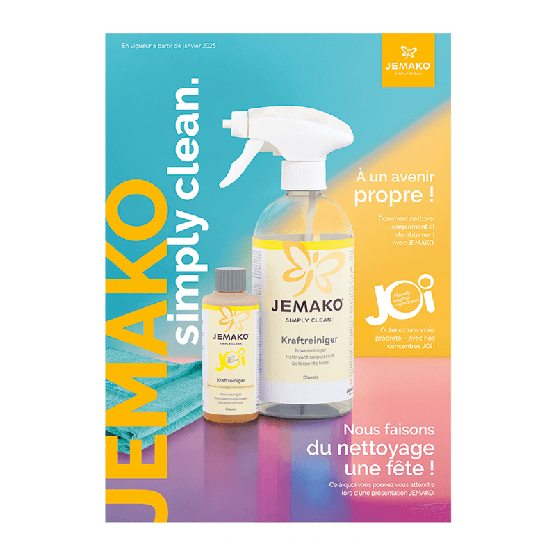 Des sets optimisés, des astuces de nettoyage intelligentes, des informations de fond passionnantes sur nos valeurs de propreté - tout cela et plus encore est à découvrir dans le nouveau catalogue JEMAKO.