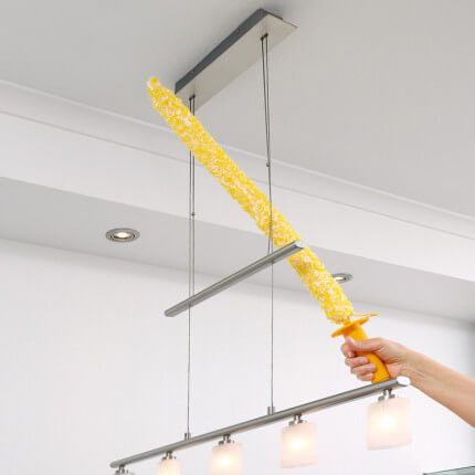 Mit unserem biegsamen „Staubschwert“ werden selbst schwer erreichbare Ecken wieder gründlich sauber.