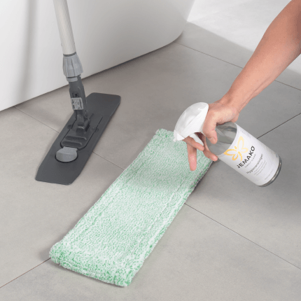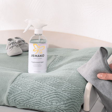 Auf das trockene JEMAKO Profituch sprühen und die zu reinigenden Oberflächen abwischen. Zur Reinigung der Bad-Böden den Hygienereiniger einfach direkt auf die trockene grüne Kurzflor-Bodenfaser sprühen und den Boden wischen. In beiden Fällen ist kein Nachwischen erforderlich.