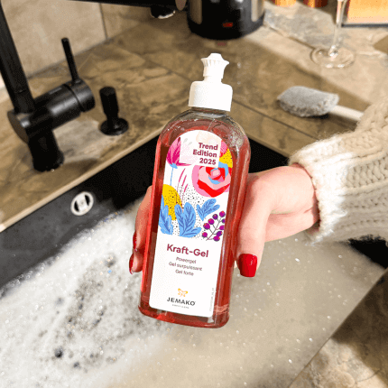Das Handspülmittel von JEMAKO: Extrastark und hochergiebig gegen Schmutz und Fett.