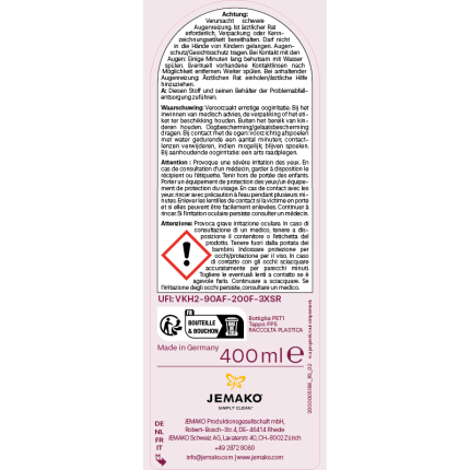 - Dosierung: 3 ml (ca. 1 Tl) mit 5 l Wasser verdünnen.