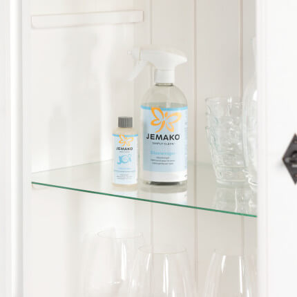Le nettoyant pour le verre retire les traces de doigts et les légères taches de graisse en un clin d’oeil et apporte un éclat sans traces aux surfaces en verre et aux miroirs.