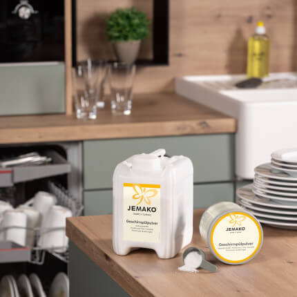 Più «WOW» per le stoviglie! La Polvere per lavastoviglie JEMAKO pulisce in modo ottimale grazie al suo eccellente potere pulente e al dosaggio ecologico: il risultato di pulizia è stupefacente.