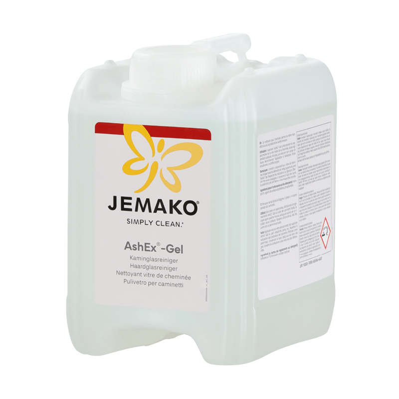 AshEx®-Gel sparsam und gleichmässig auf die kalte Kaminglasscheibe sprühen und einige Minuten einwirken lassen, dann das Gel mit einem feuchten AshEx®-Tuch abnehmen. Bei Bedarf Vorgang wiederholen und abschliessend mit ausgewaschenem AshEx®-Tuch nachreinigen. Nur für Kaminglas geeignet; Metallteile, Stein etc. nicht mit AshEx®-Gel behandeln!