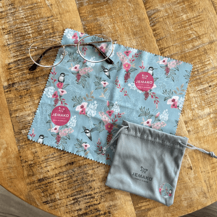 Chiffon pour lunettes 17 x 20 cm avec sac, design « Colibri »