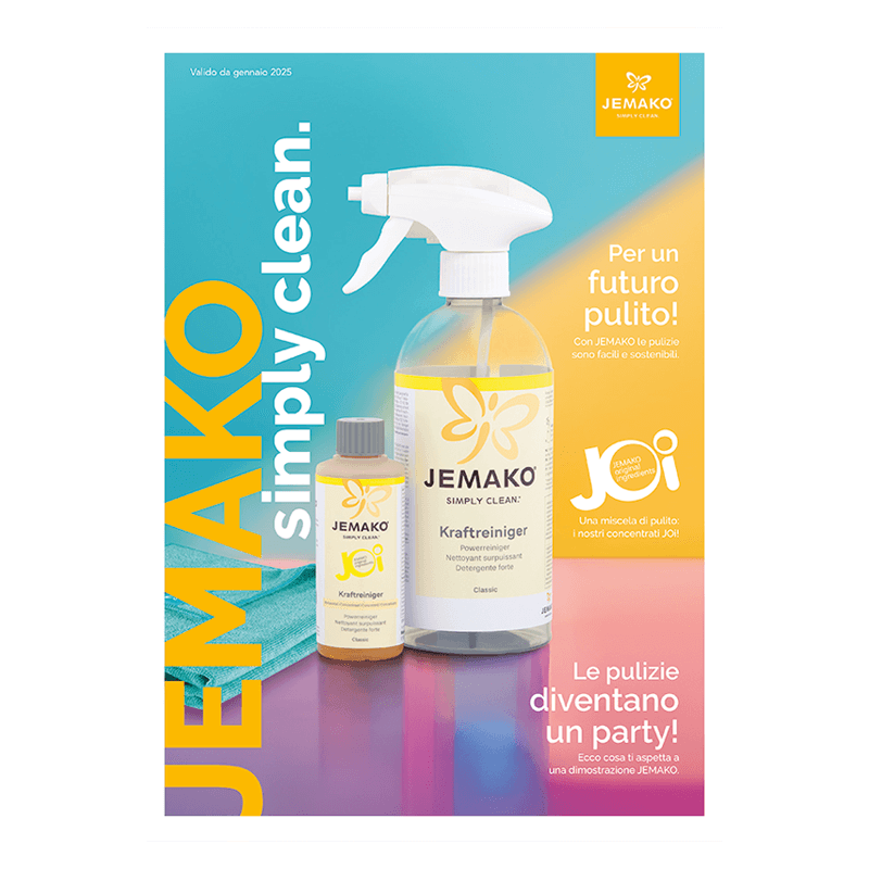 Geoptimaliseerde sets, slimme schoonmaaktips, boeiende achtergrondinformatie over onze schone waarden - ontdek dit alles en nog veel meer in de nieuwe JEMAKO catalogus.