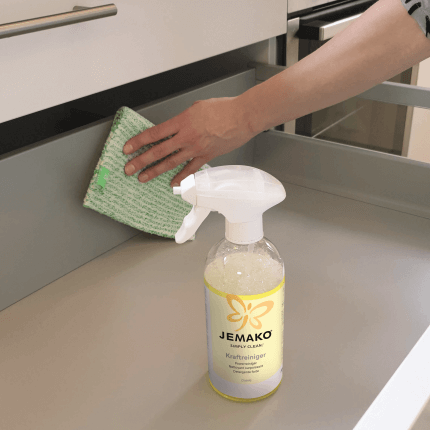 Contre la graisse et la saleté dans la cuisine : le nettoyant surpuissant JOi à mélanger en combinaison avec notre chiffon pro éprouvé.