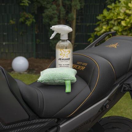 Pulire innanzi tutto la pelle con la Schiuma attiva per pelli e imbottiti e la fibra gialla. Dopo l’asciugatura, applicare la Lozione nutriente per pelli. La pelle acquisirà un aspetto come nuovo e molta elasticità.