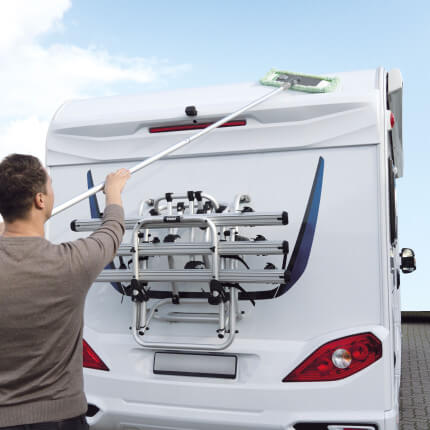 Die perfekte Kombi aus Bodenwischgerät, drei Bodenfasern und zwei Reinigern für matte, raue Böden, geölte/gewachste Holzböden sowie das Nachwischen/Trocknen aller Böden.
