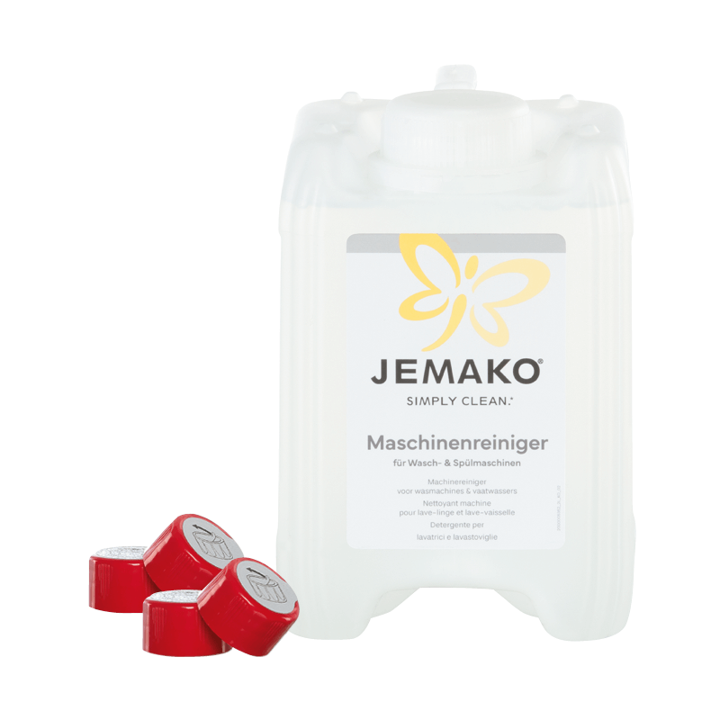 - Anwendung Waschmaschine: Waschmittel-Einspülkammer entnehmen, mit wenig Maschinenreiniger und einer JEMAKO Faser reinigen. Anschliessend abspülen. Aus der Gummidichtung Flusen, Steinchen etc. entfernen. Mit etwas Maschinenreiniger die Dichtung sowie die Innenseite des Bullauges reinigen. Den restlichen Maschinenreiniger in die Hauptkammer des Einspülfachs geben und einen Hauptwaschgang bei mindestens 60 °C ohne Wäsche starten. Nach der Anwendung ist die Maschine sofort wieder einsatzbereit. Empfohlene Anwendung: Alle 4 – 6 Monate.