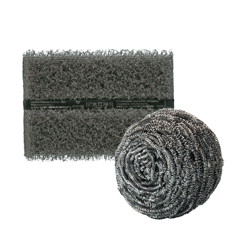 Unsere kraftvollsten Helfer gegen hartnäckige Verschmutzungen in der Küche. Die Kombination aus unserer bewährten grauen Faser und der Reinigungskraft der Edelstahlspirale schafft auch die hartnäckigsten Fälle.