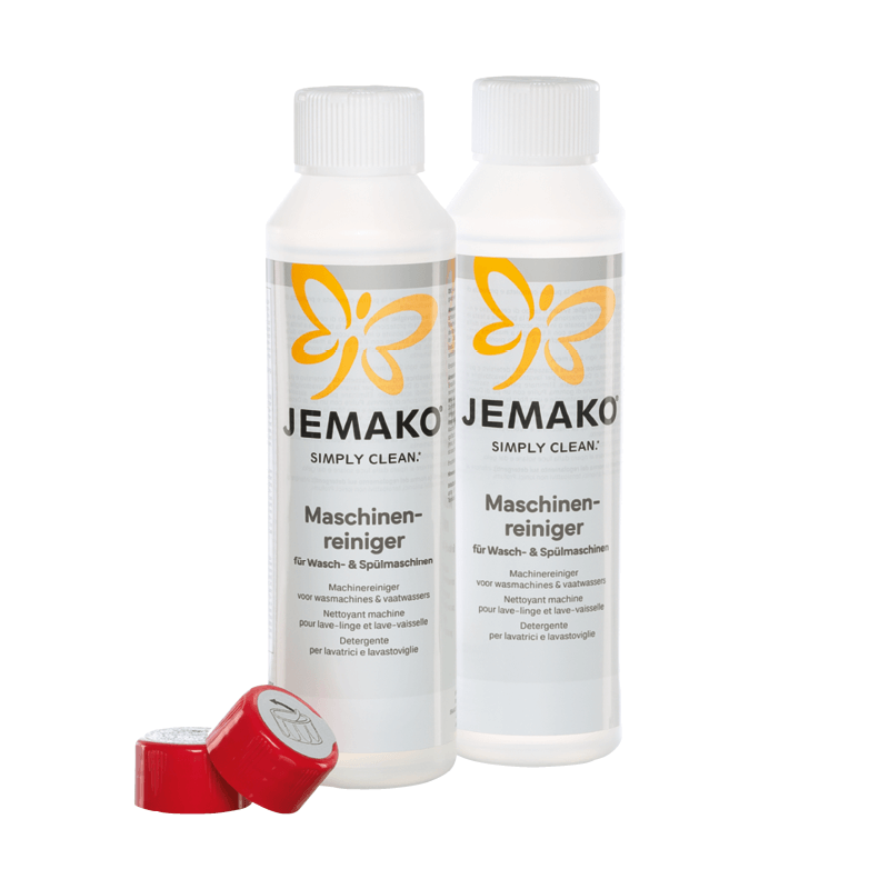 - Utilisation pour le lave-linge : retirer le bac à produits lessiviels de son logement, le nettoyer avec un peu de nettoyant machine et une fibre JEMAKO. Rincer le bac à l‘eau claire. Déloger les peluches, gravillons ou autres qui se sont accumulés dans le joint en caoutchouc. Nettoyer le joint et l‘intérieur du hublot en passant une fibre JEMAKO avec un peu de nettoyant machine. Verser le reste du nettoyant machine dans le compartiment principal du bac à produits lessiviels et lancer un cycle de lavage à vide à 60 °C minimum. Après emploi, la machine est à nouveau immédiatement opérationnelle. Emploi conseillé : tous les 4 à 6 mois.